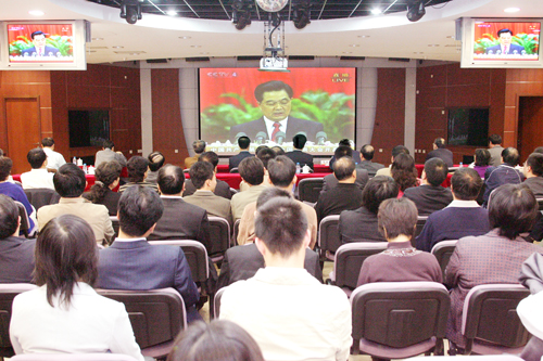 中核集團總部組織收看十七大開幕式-中子監測儀,核輻射檢測儀,個人輻射劑量儀,固定式輻射報警儀,表面污染檢測儀,表面沾污監測儀,核安全與輻射防護網_浙江_麗水